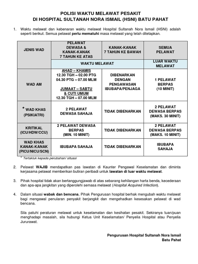 waktu melawat hospital